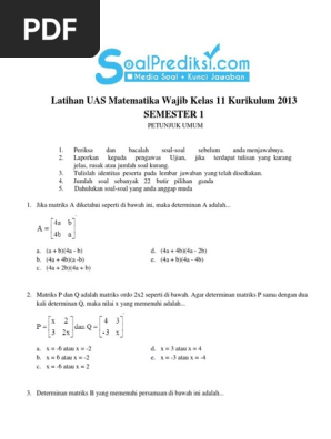 3.6 menggeneralisasi pola bilangan dan jumlah pada barisan aritmetika dan geometri. Download soal uas mtk wajib kelas 10 11 12 semester 1 k13 revisi 2018 kumpulan soal mtk wajib soal matematika wajib sma smk ma kurikulum 2013 revisi. Soal uas mtk kelas 12 semester 1 pilihan ganda k13 jawaban. Kunci jawaban lks pr matematika wajib kelas 11 semester 1. Halo adik adik, pada kesempatan kali ini kakak ingin membagikan beberapa contoh soal latihan uas yang mungkin adik adik butuhkan, nah soal uas ini sudah kakak susun sebanyak 16 mata pelajaran baik itu untuk adik adik jurusan ipa maupun untuk adik adik jurusan ips.
