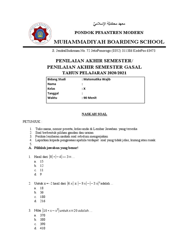 Kunci Jawaban Soal Latihan Penilaian Akhir Semester Pas Uas Kelas 10 Sma Matematika Semester 1 Tribun Pontianak from cdn-2.tstatic.net Download soal matematika kelas 11 semester 2 kurikulum 2013 doc soal latihan matematika wajib semester 1 kelas x lailatul soal uts ktsp matematika kelas 1 sd semester 2 4lo948798rlx. Semuanya kunci jawaban terbaru kurikulum 2013 tahun ajaran 20192020 berlaku untuk semester 1 dan 2. Peluang, bangun ruang (dimensi tiga), dan logika matematika. Pas soal uas kls xi mtk peminatan.docx. Download soal dan kunci jawaban ksn k sd matematika dan ipa 2020 pdf. Uji kompetensi 3 ini terdapat pada halaman 127 134. Semua video materi di bawah ini didesain dengan runut dan terstruktur. Selamat datang di blog kumpulansoaltest.