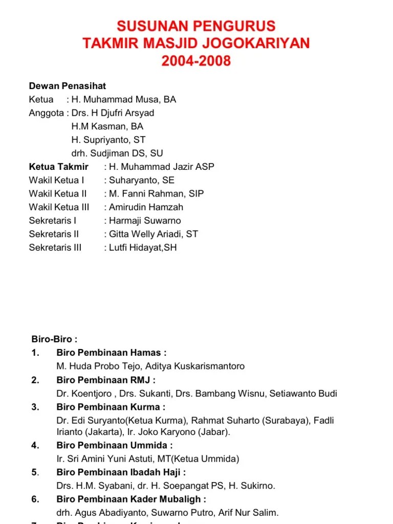 Struktur dan uraian tugas masjid. Contoh susunan pengurus takmir masjid 081331587344 harga kubah masjid. Struktur organisasi masjid nasional al akbar surabaya from wwwmasjidalakbarorid. Tergantung juga karena mekanisme kerja organisasi masjid tersebut. Doc peranan organisasi ikatan remaja masjid desa lalang di.