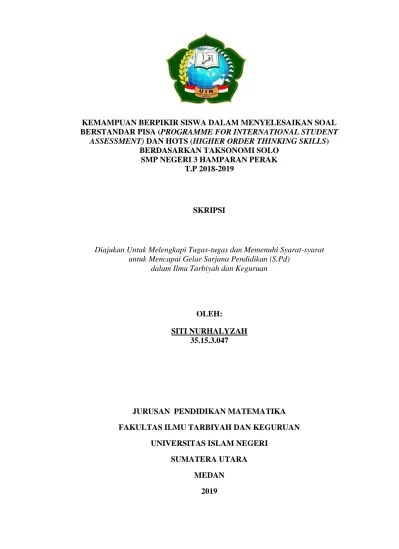 (2) menganalisis kesesuaian instrument matematika pada soal penilaian tengah semester yang berorientasi high order thinking skill (hots).